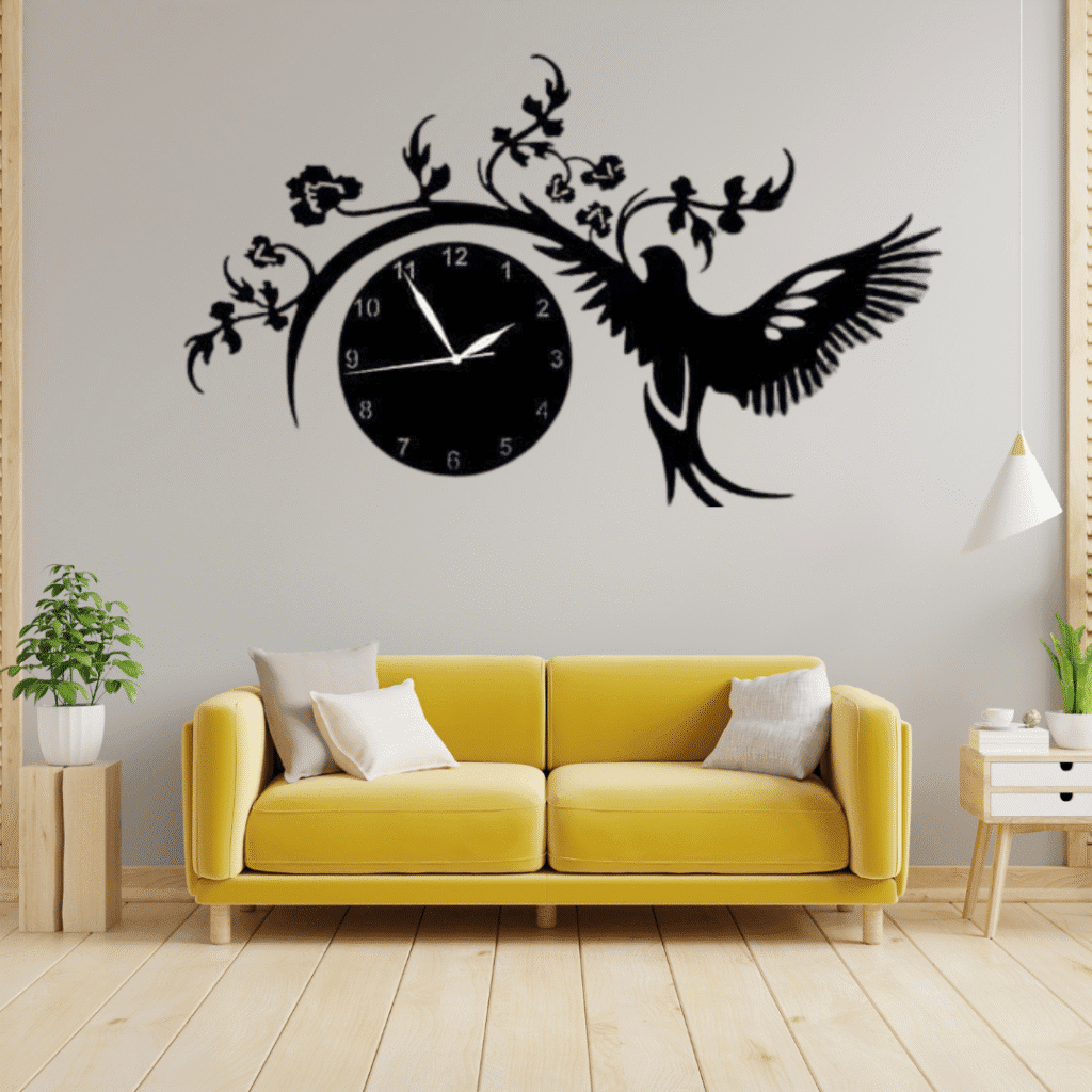 Elegant Wall Clock with Bird and Floral Design